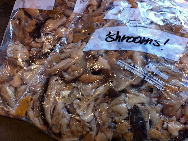 So when a couple of pounds of Springwater Farms' gorgeous fresh mushrooms followed me home from the Hillsdale Farmers' Market, I tore them up, sautéed them with some shallots and white wine and spooned them into a couple of freezer bags. It's pretty much guaranteed that soon I'll open that door again and hear a whisper about ragu or risotto or chowder.