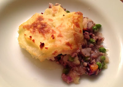 Put lamb mixture in 9 by 12-inch baking dish and smooth the surface. Drop mashed potatoes onto the top of the lamb in dollops, spreading the potatoes out with the back of a spoon or spatula to completely seal in the lamb. Place baking dish in oven and bake for 25 minutes until potatoes begin to brown. If desired, you can then briefly place the baking dish under the broiler to crisp the top further, but it's not necessary.